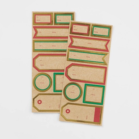 16ct Red Green Gold On Kraft Sticker Gift Tags Wondershop Target